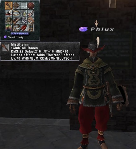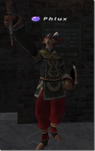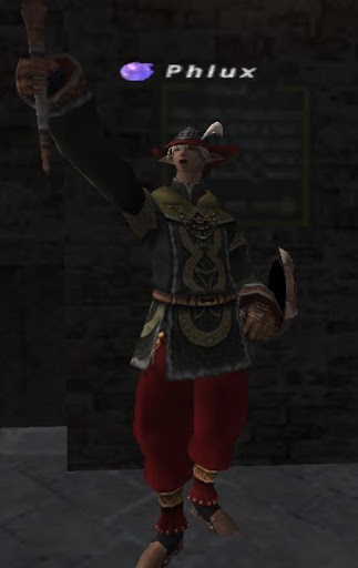 This is Phlux. This Elvaan male started out a RDM, and is an excellent one. In addition to RDM, he has BLM, WAR, and THF at 75, with DRK and WHM coming up through the ranks quickly. Phlux has probably done just about everything one can do in FFXI - all manner of endgame activities, missions, quests, and battlefields, and he has the gear to show for it.